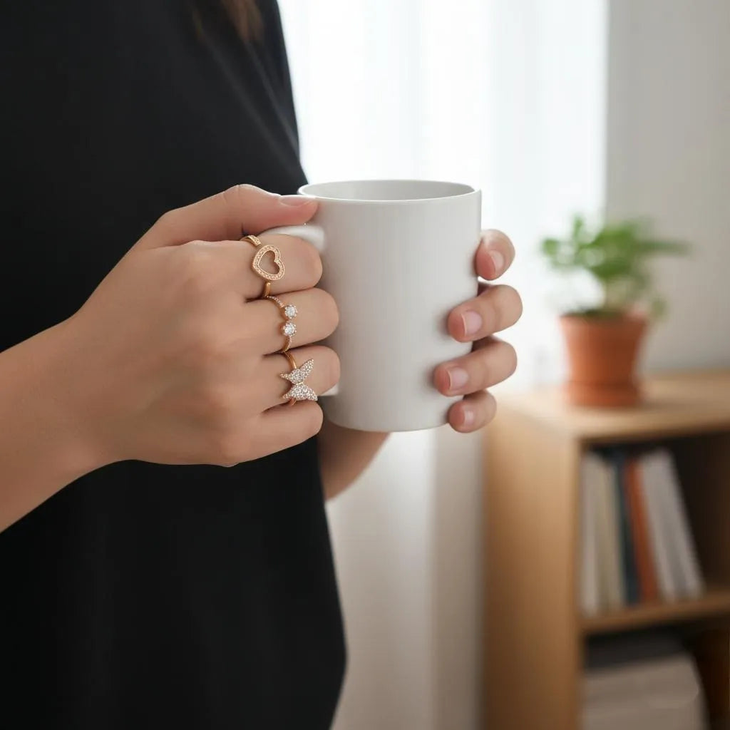 • Material: Stainless Steel• Stone: Crystal• Gender Type: Women• Product Design: Funky• Number Of Pieces: 1 Pc• Size: Adjustable• Color: Golden• Package Includes: 1 x Adjustable Rings Set• Note: Keep jewelry dry, away from chemicals. Store separately in a soft pouch. There might be a slight color difference due to different light and monitor effects.